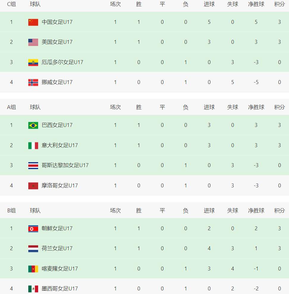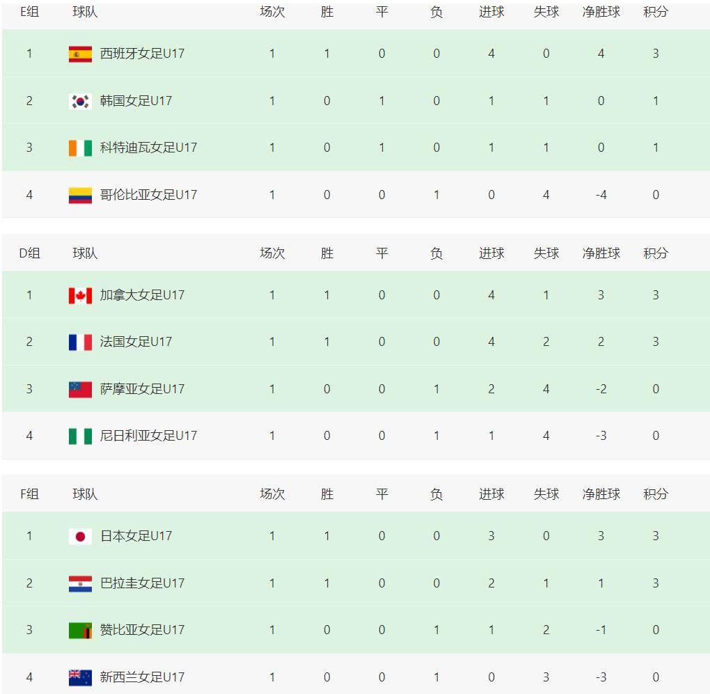 随着首轮比赛的全部结束,最新的积分榜显示,中国女足、日本和朝鲜均在各自小组中排名第一,而韩国队则位居小组第二,展现出强大的竞争力。在欧洲方面,西班牙队是唯一一支排名小组第一的球队。