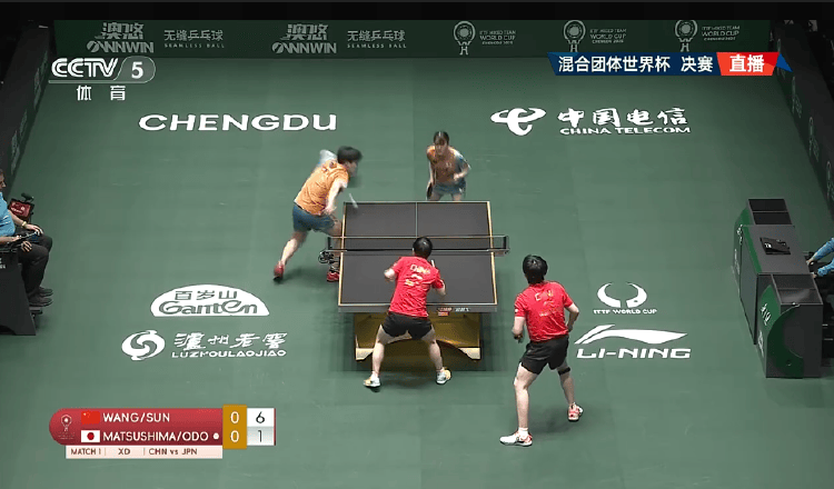首场混双比赛,王楚钦/孙颖莎3-0战胜松岛辉空/大藤沙月,三局比分为:11-4、11-4、11-6。中国队大比分3-0领先。