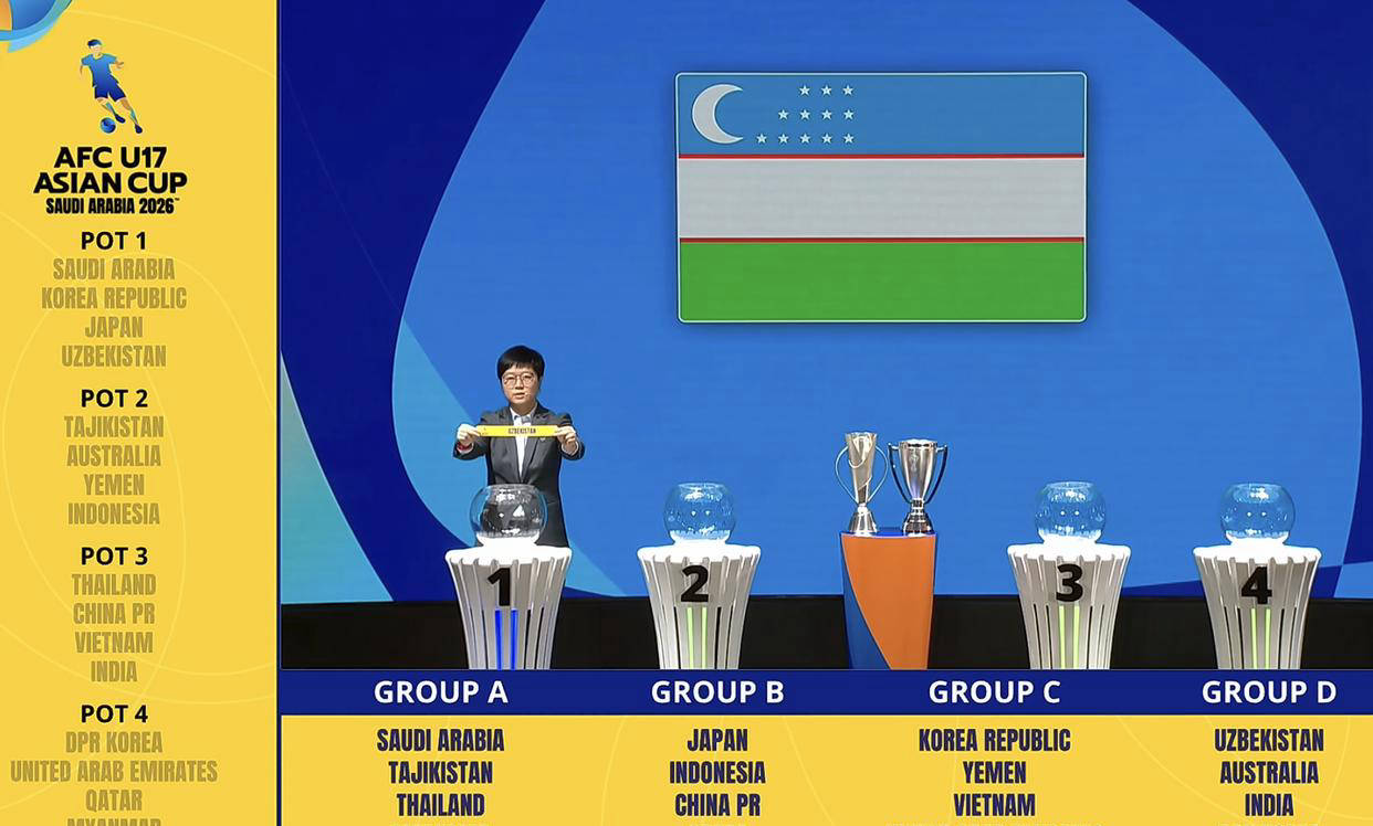抽签结果方面,A组由东道主沙特领衔,搭配塔吉克斯坦、泰国和缅甸;B组则有中国、日本、印尼和卡塔尔。C组包括韩国、也门、越南及阿联酋,D组包含乌兹别克斯坦、澳大利亚、印度和朝鲜。赛事将于5月5日开幕持续至22日,中国队将逐场迎战印尼、日本和卡塔尔。