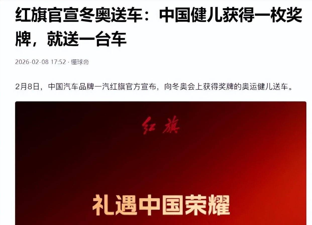 按红旗这政策,团体项目的每个人都能单独拿一辆车。 参考上次巴黎奥运会,张雨霏拿了1银5铜,最后得了6辆车,网友还调侃她“一周七天换车开”。 这次苏翊鸣2月7号拿了大跳台铜牌,是中国队首枚奖牌,他成了第一个触发这赠车资格的人。